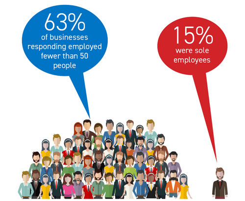 Every sector of the business community replied. Of the businesses who responded, nearly two thirds (63%) employed fewer than 50 people whilst 15% were sole employees.