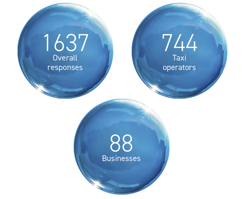 There were 1637 responses overall, including 744 taxi drivers/operators and 88 businesses.