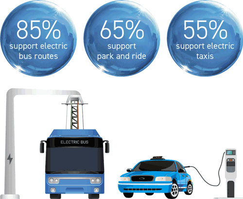 There was strong support for the introduction of electric bus routes from 85% of respondents; 65% support the implementation of a new Park and Ride site in South Bradford; and 55% would be keen to book an electric taxi.