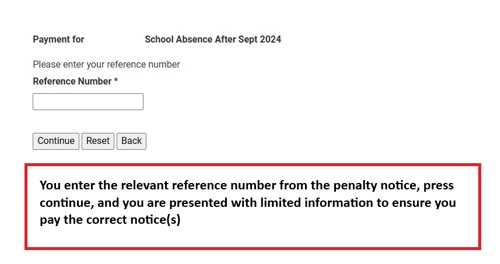 - You are then taken to another webpage, where you can enter your penalty notice reference number and make payment by credit or debit card for the correct amount.
