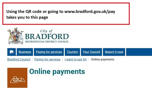 - Go to www.bradford.gov.uk/pay.