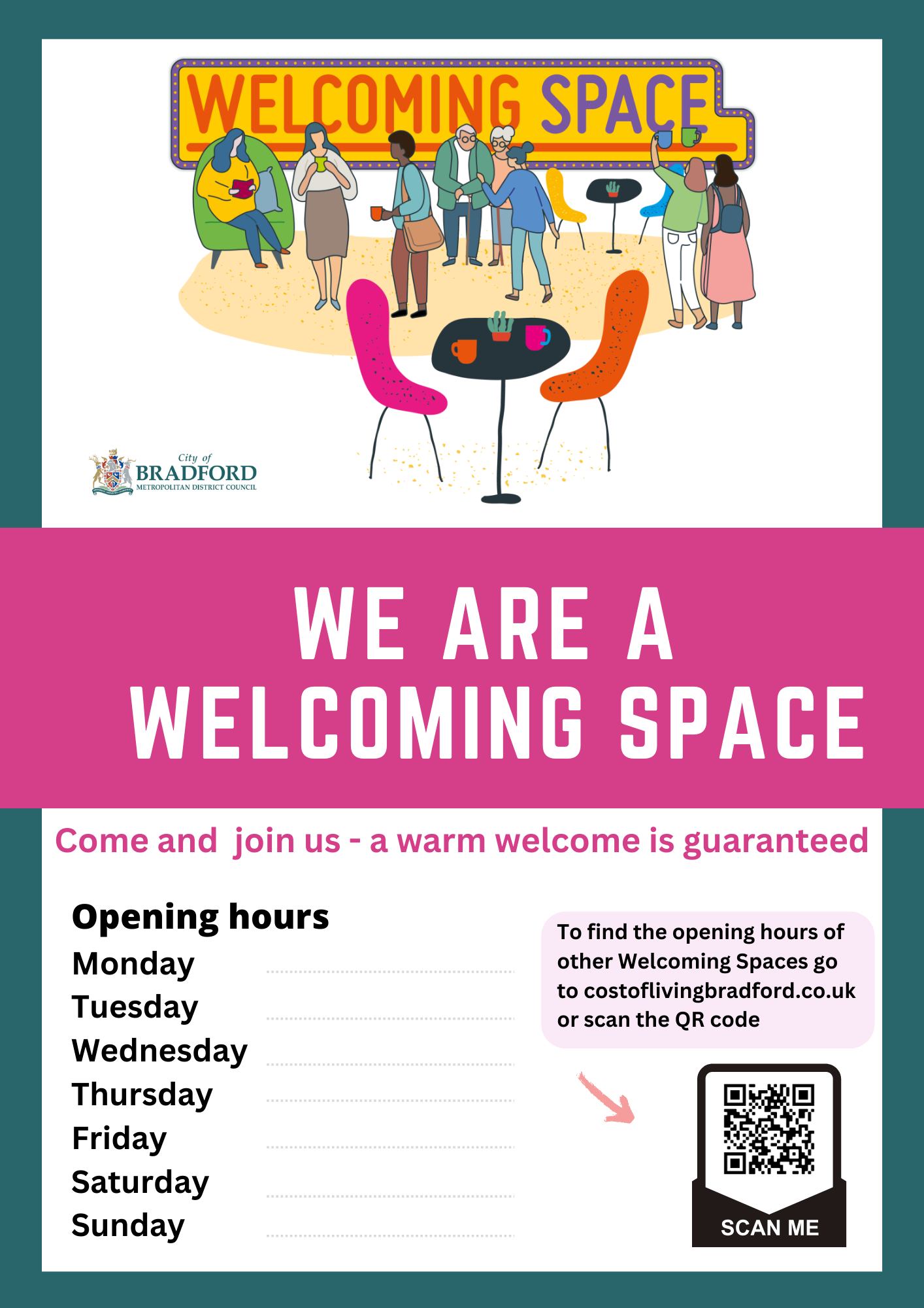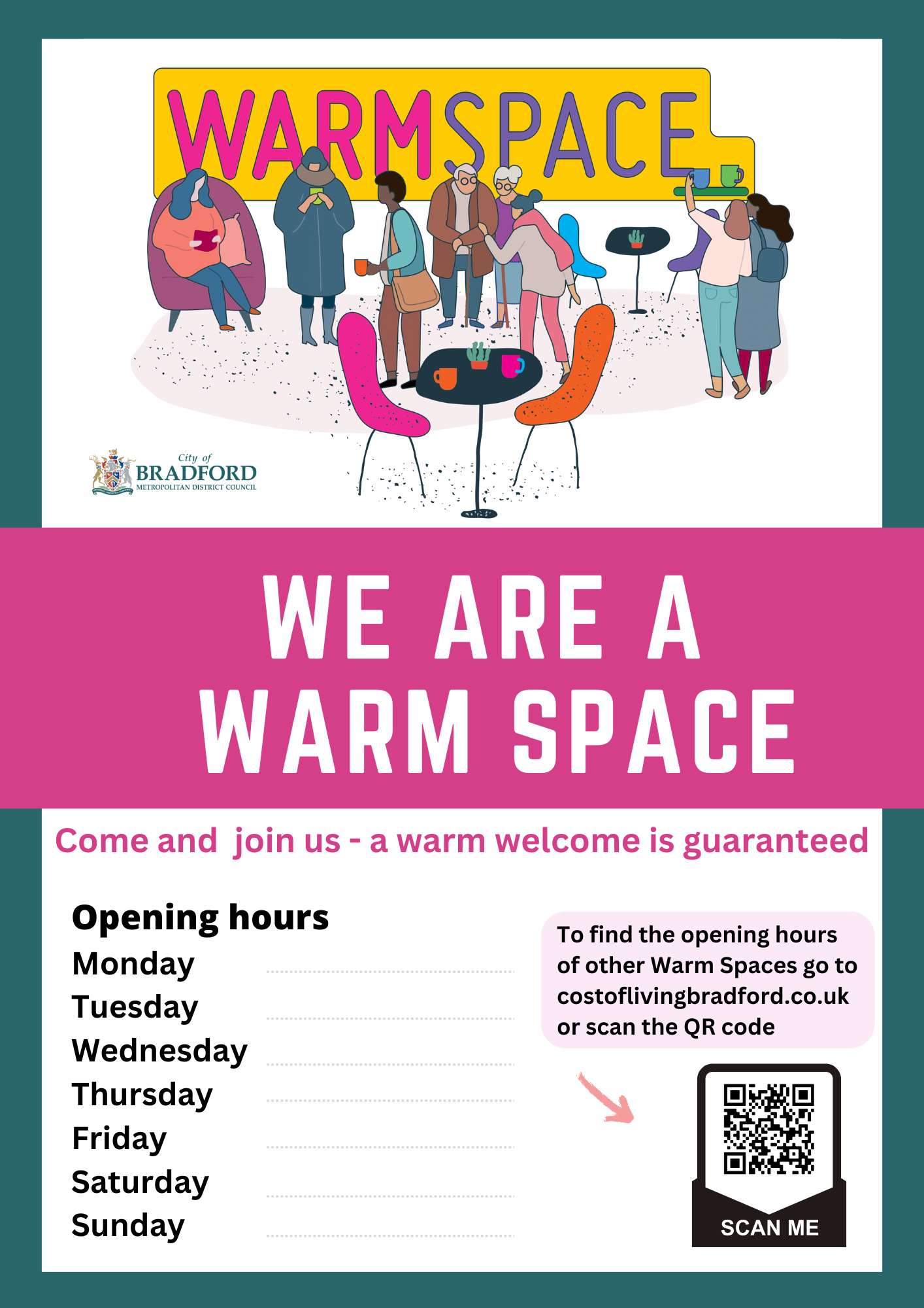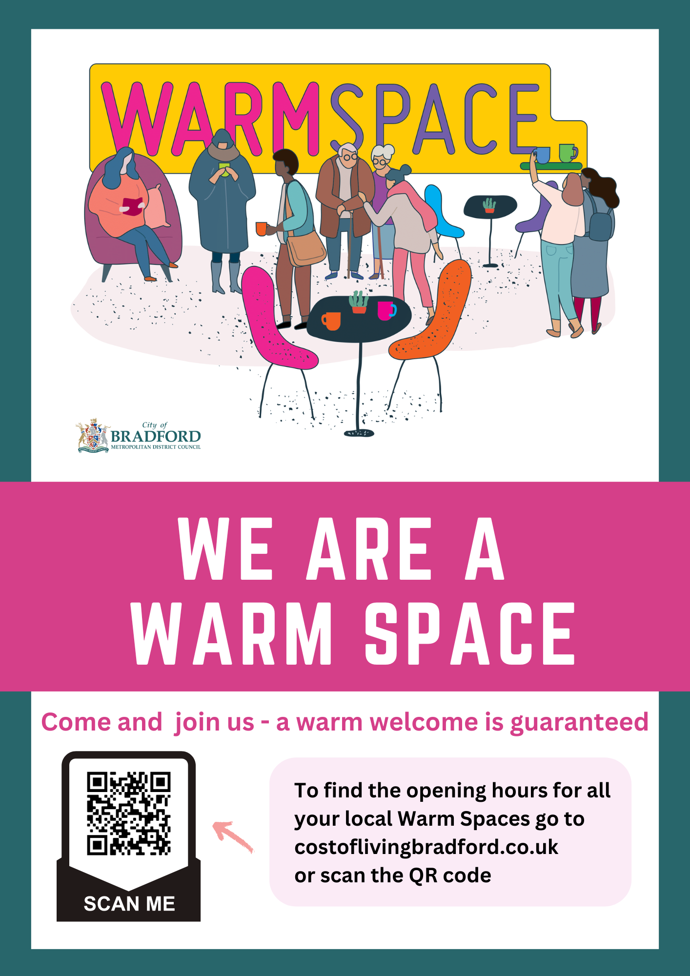 An initiative to promote a network of Warm/Welcoming Spaces across Bradford District - places where anyone can go to be comfortable and be with other people.